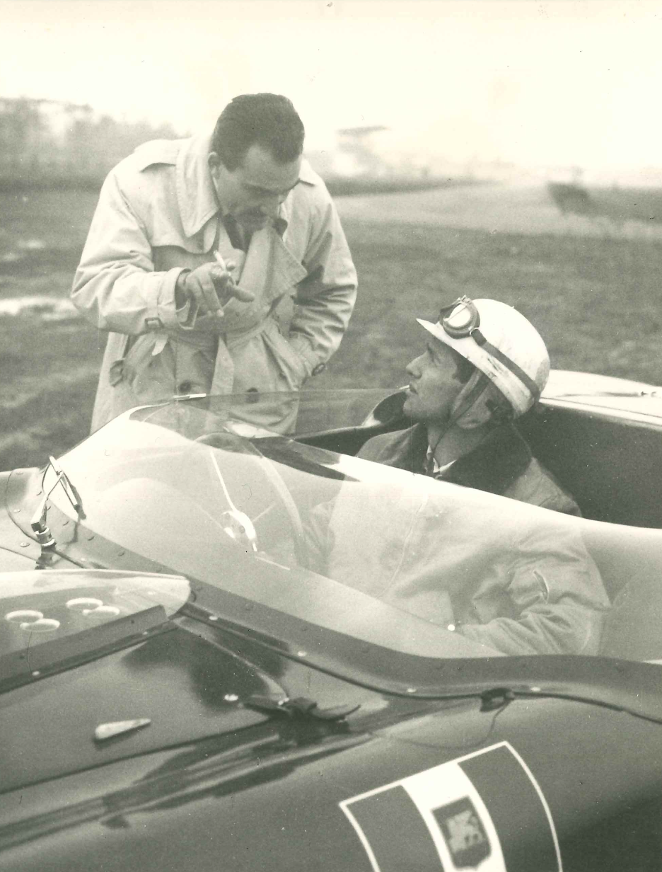 Maurice Trintignant pilota , Nello Ugolini, Zourab Tchkotoua, Conte Volpi Giotto Bizzarinni
